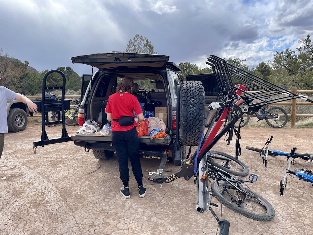 Everything from post-ride lunches to loading gear is significantly made easier with the rack swung open. This is especially true if you have a van with bi-fold doors or a swing out spare tire on your tailgate (as shown on our Land Cruiser below).