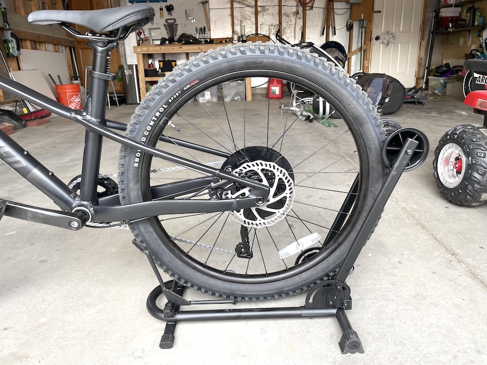 Quick and easy to use, the BIKEHAND floor stand cradles the rear tire via three contact points to securely keep bikes upright without any frame contact. Compared to similarly-designed bike stands that we have tested, BIKEHAND’s unique swiveling wheel cage provides an extra point of contact that greatly increases the overall stability of the bike while sitting in the rack.