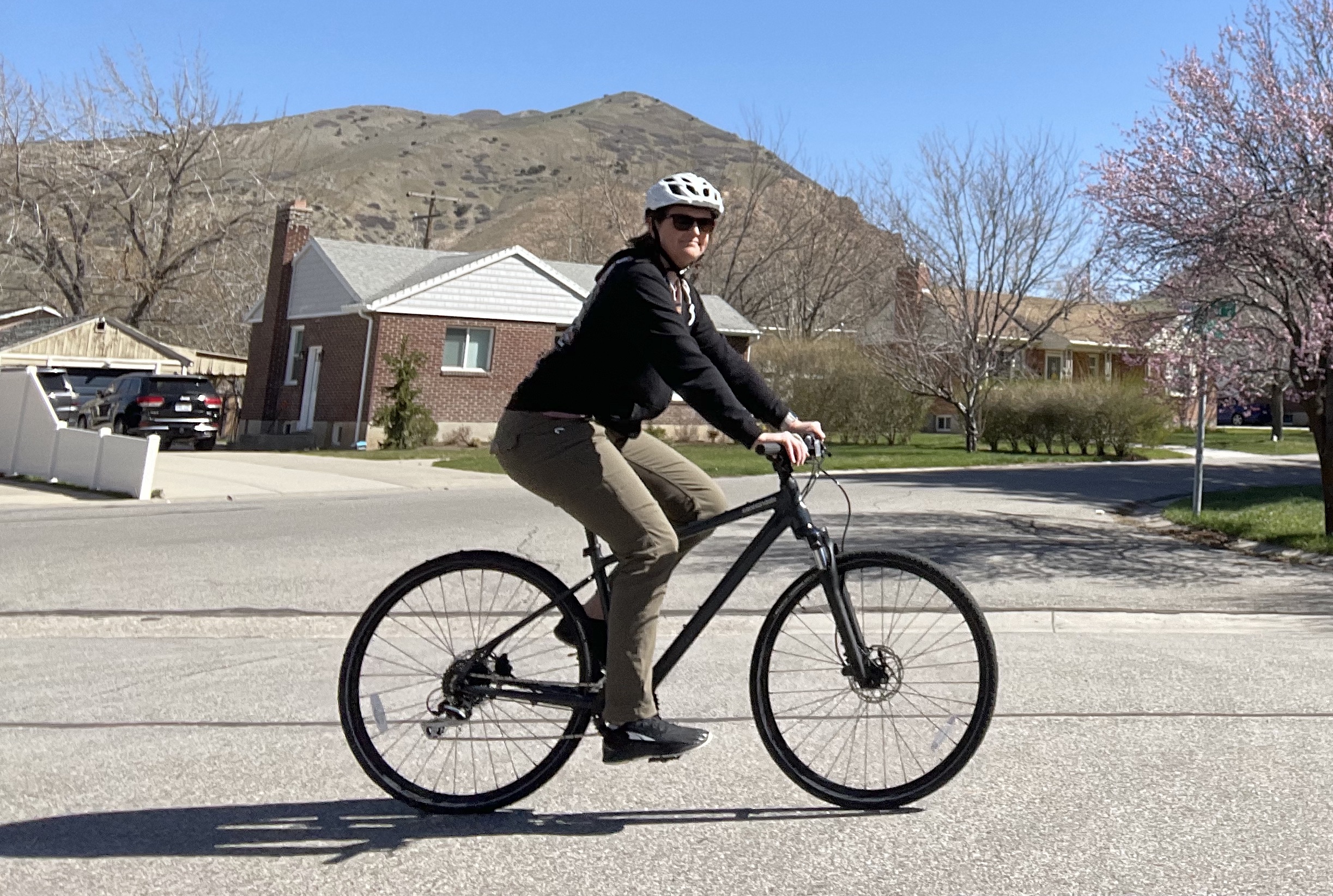 Our “mom bike tester” has been riding her Trek Marlin for about two years now and can’t stop raving about it. With a baby still in tow, she currently sticks primarily to paved trails with the baby on the back in a rear child bike seat. But dirt trails are in the near future as she and her boys tackle the new world of mountain biking together.