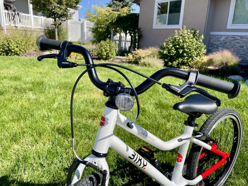 With the Biky 16’s max seat height at 25″ (using the longer seat post) and the Biky 20’s minimum at 23″, the transition between the two bikes was smooth for our 43″ tall tester, who rode with the seat set at 23″.